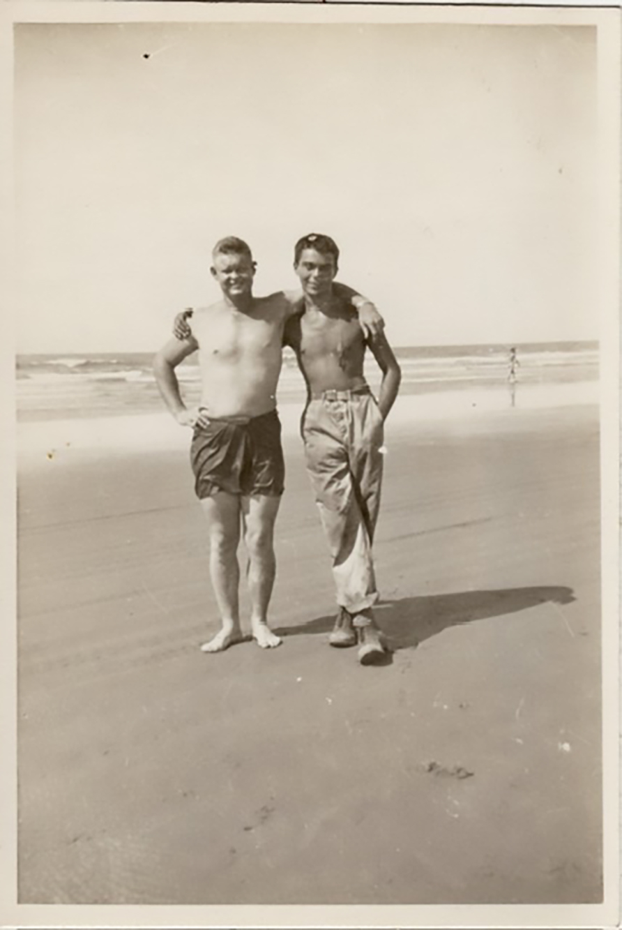 Dorian & Moriarty with natives at Tami Beach, Hollandia, Dutch New Guinea, October 1944 *